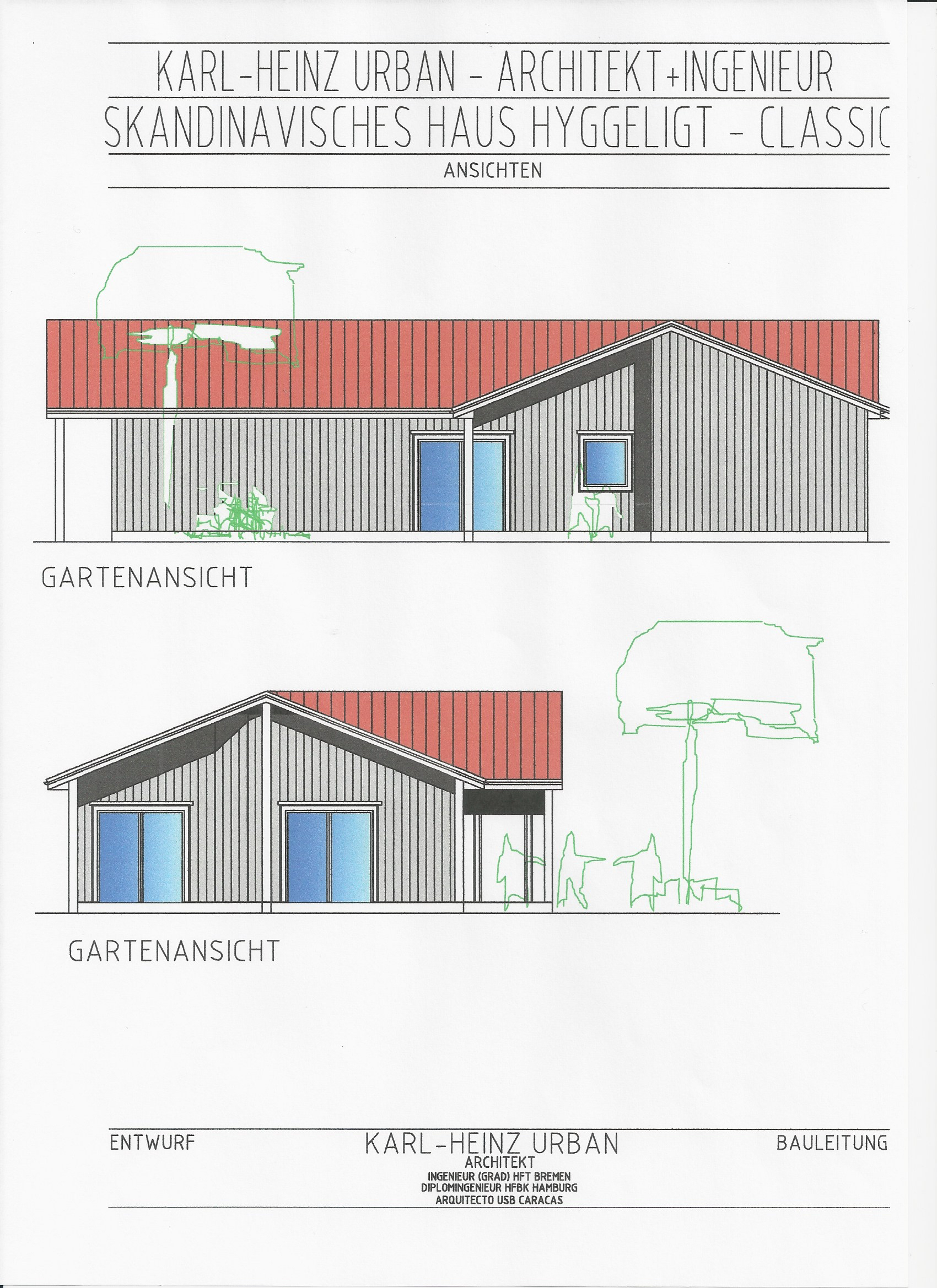Von meinem Büro werden auch nordamerikanische Einfamilienhäuser entworfen, individuell oder nach Beispielen von Entwürfen der Drummond Designs Inc. Canada. In diesem Fall kaufen wir den Entwurf dort.