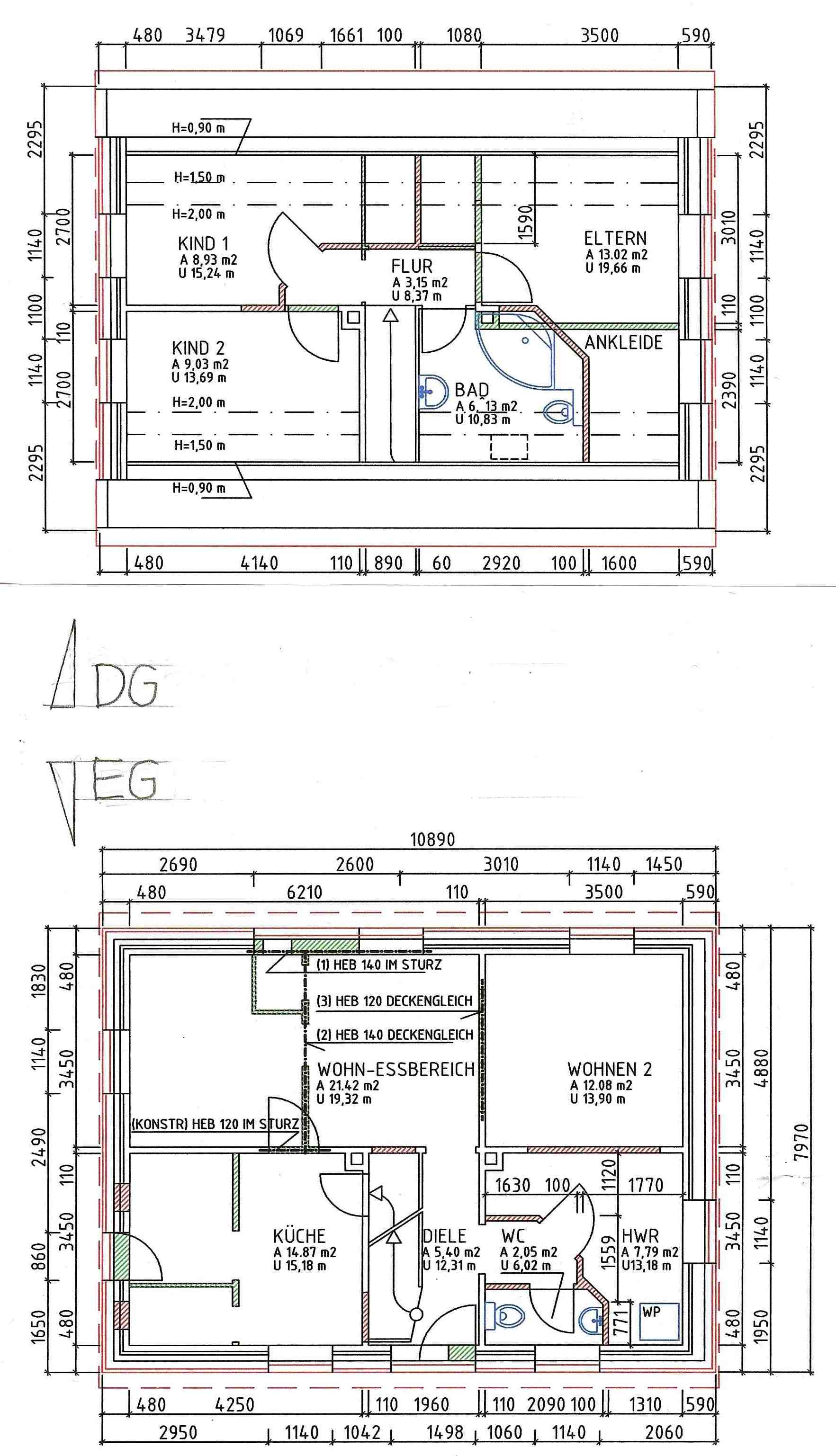 der Hülle (Wände, Decken, Dächer, Bodenplatte, Fenster) hat sich außer